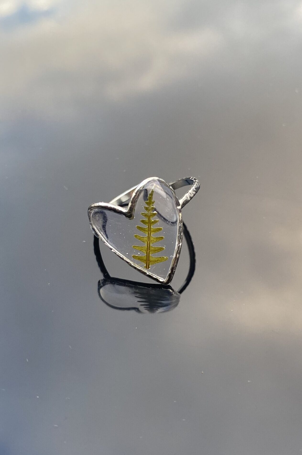 Anillo ajustable de corazón de fento (helecho) de acero inoxidable.