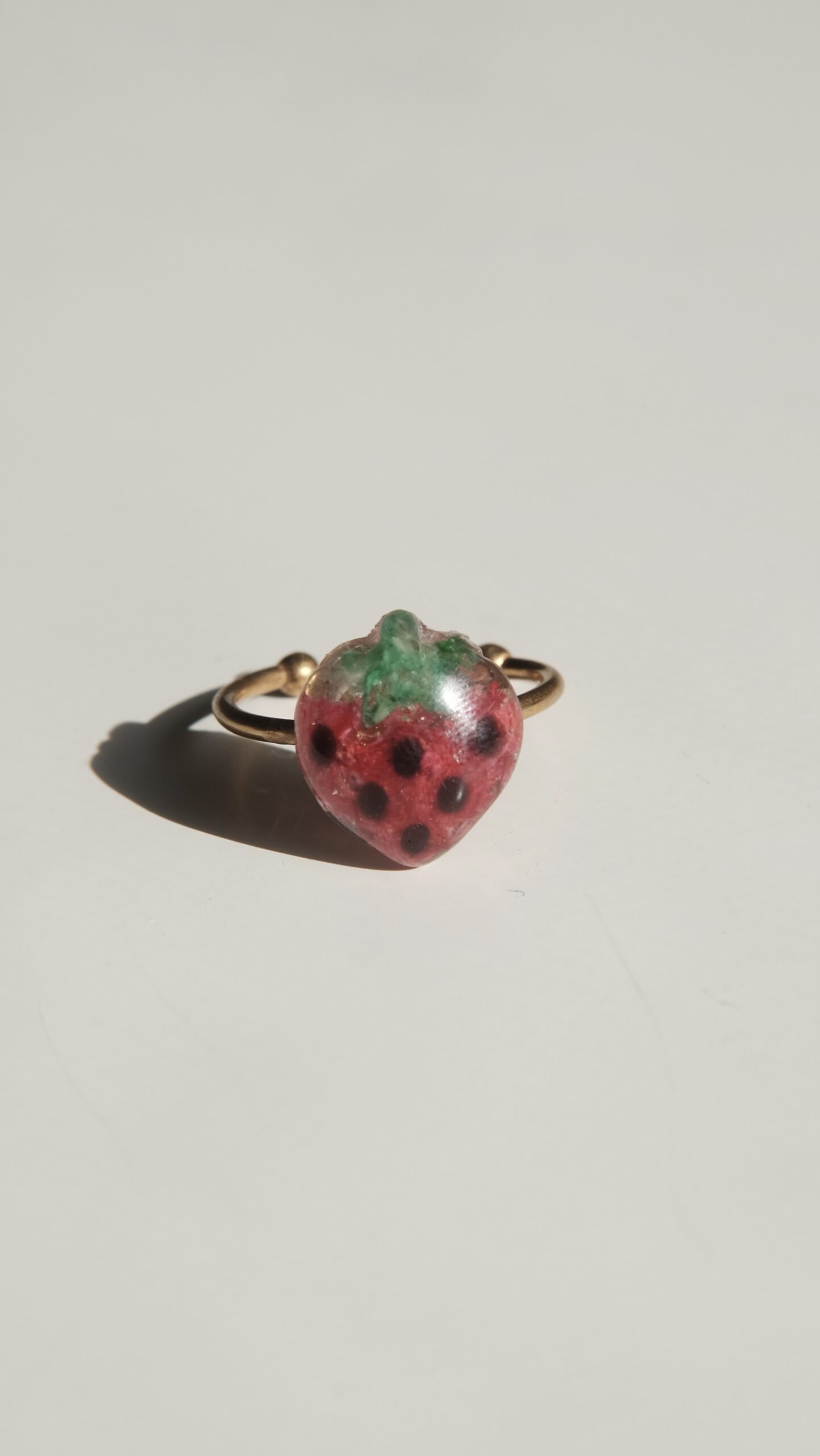 Anillo ajustable de fresa hecho con la flor de paniculata roja y verde.