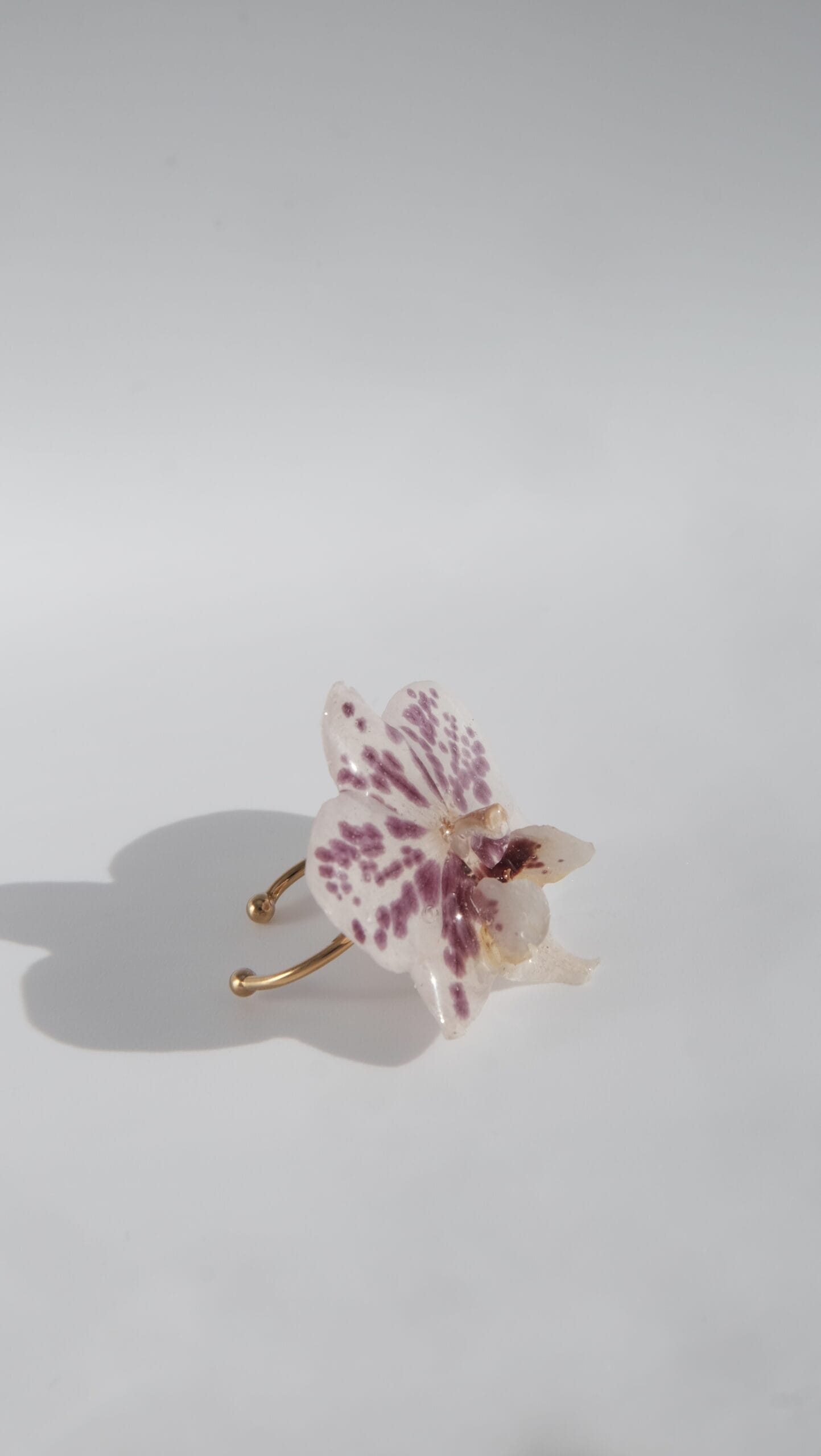 Anillo ajustable hecho con una orquídea phalaenopsis mini real.