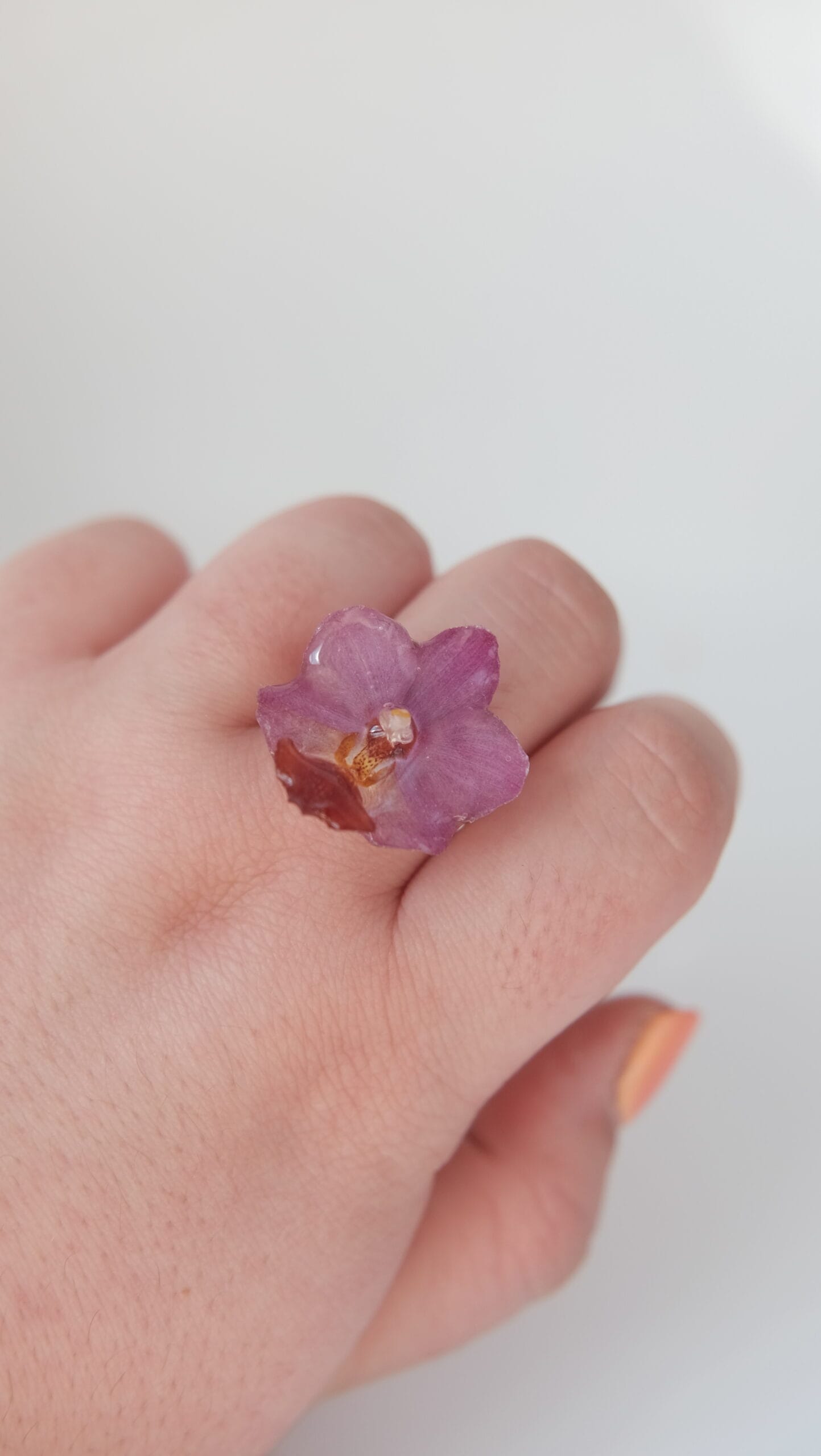Anillo ajustable hecho con una orquídea phalaenopsis mini real.