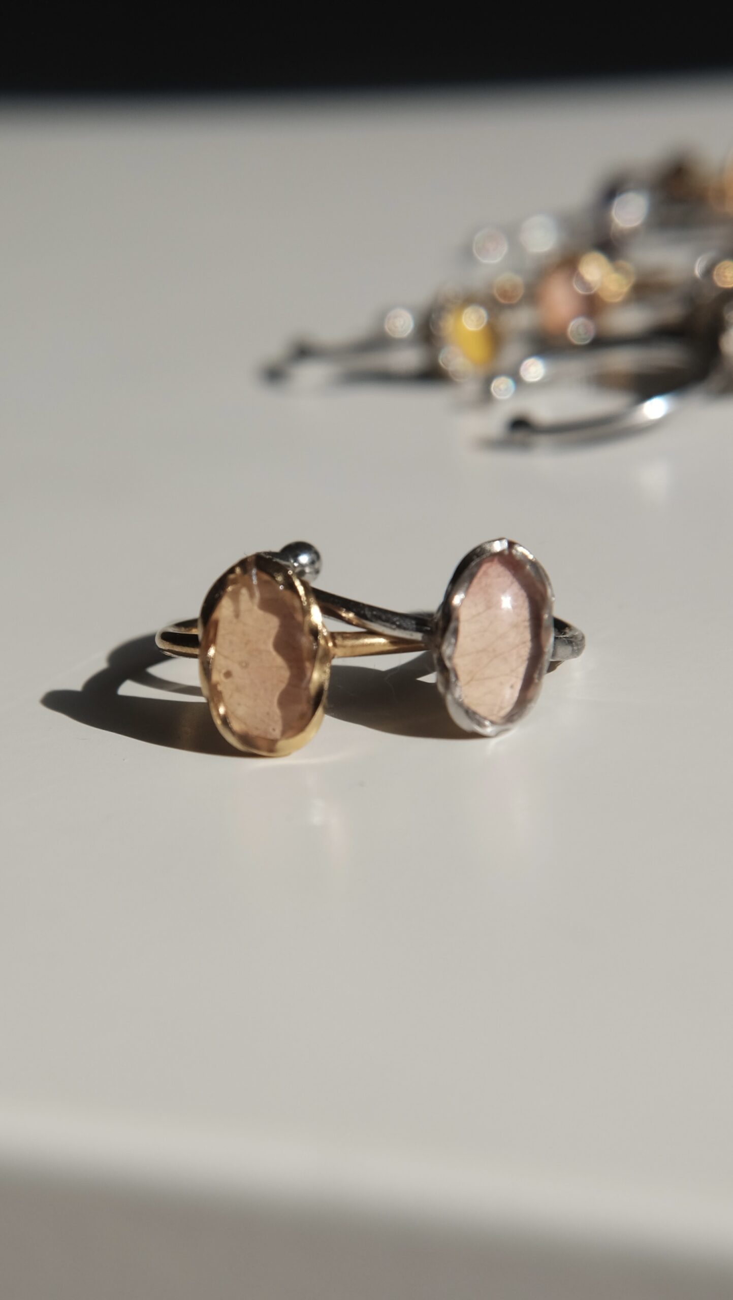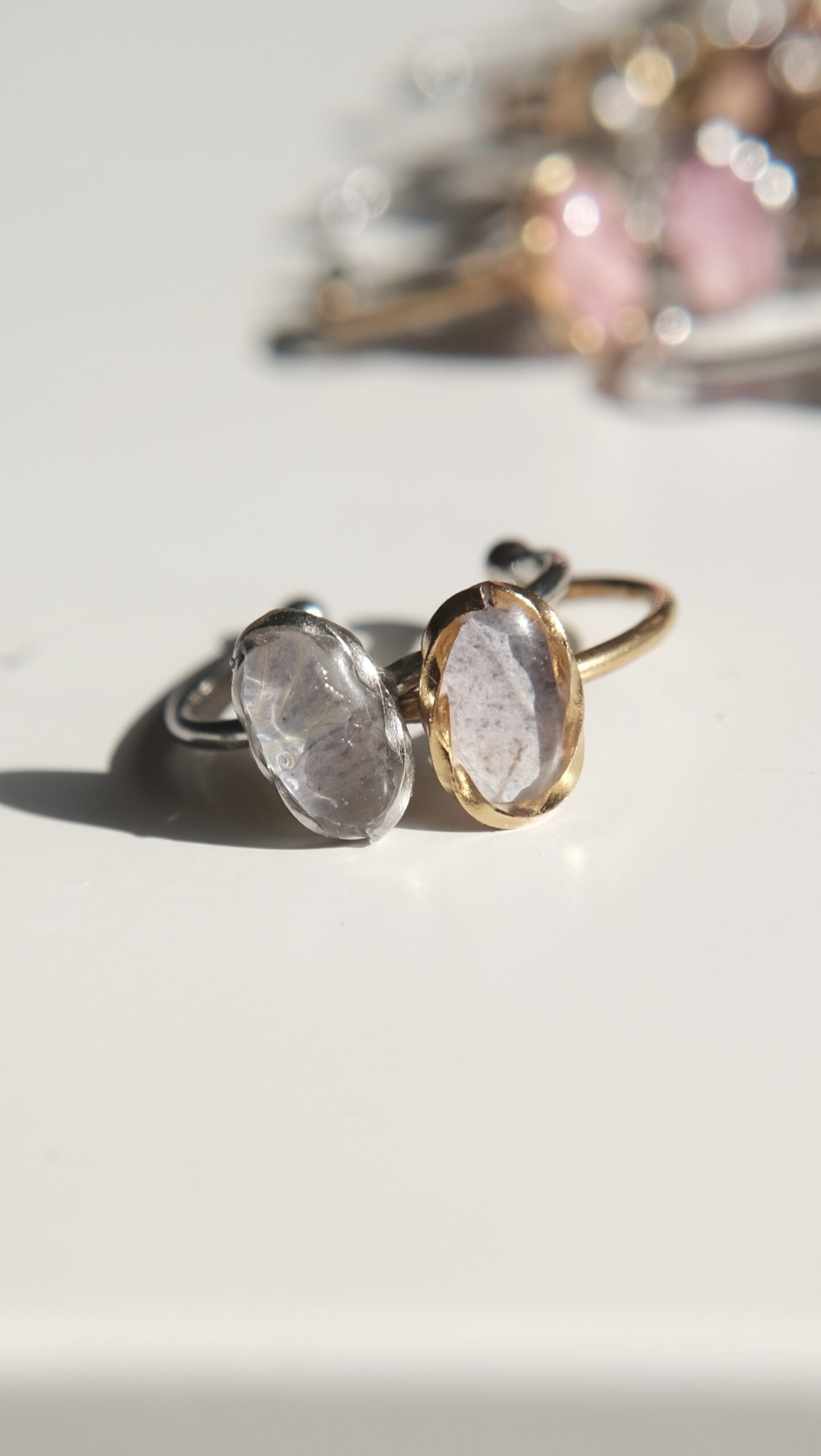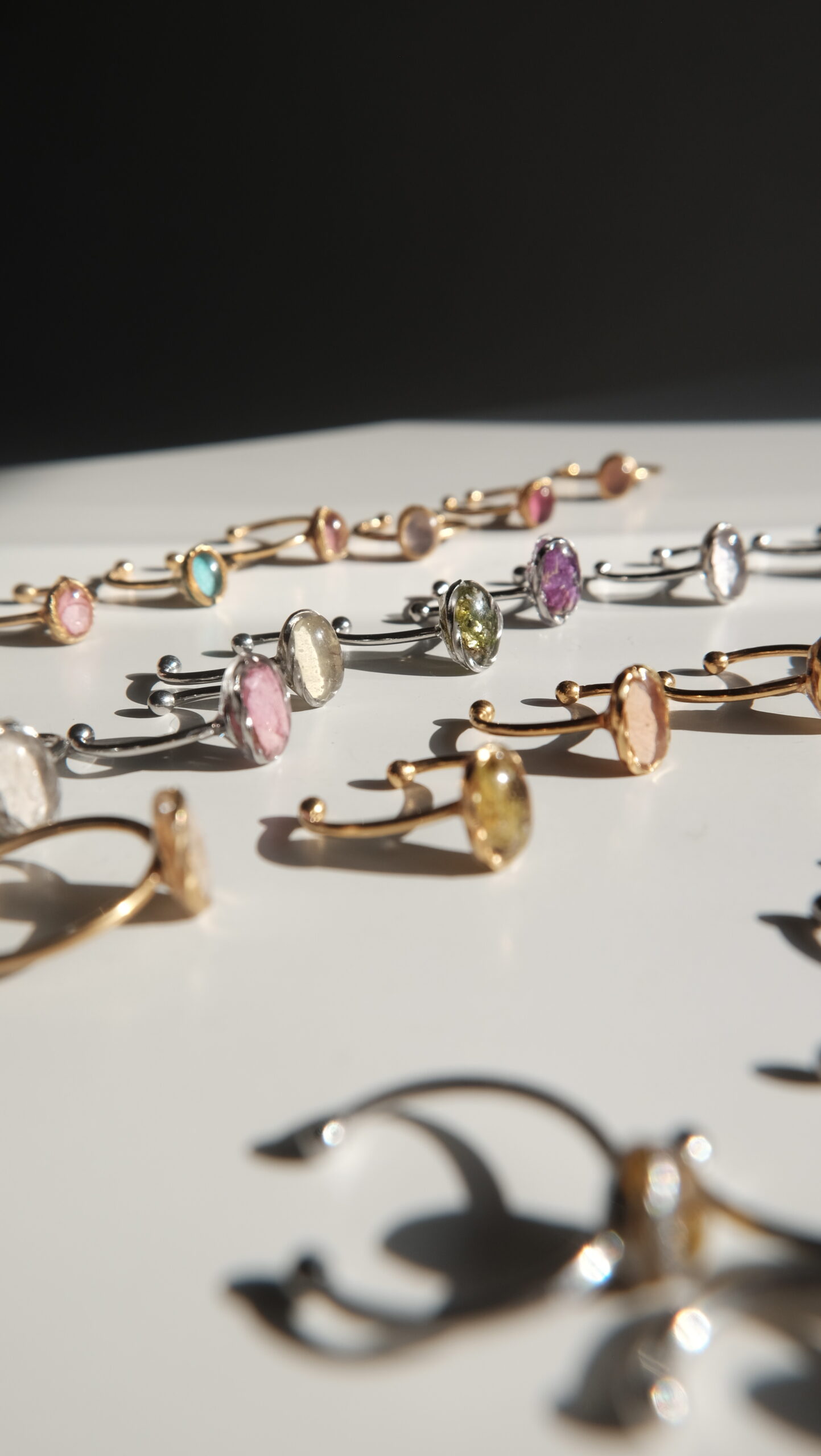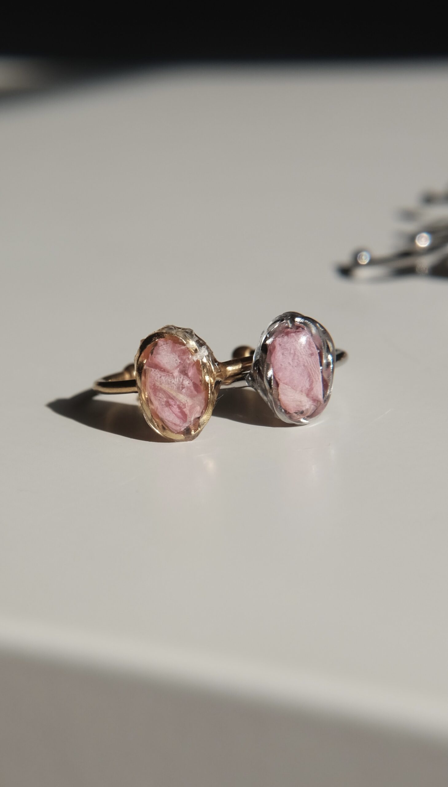 Anillos ajustables hechos con pétalos de diferentes elementos naturales.