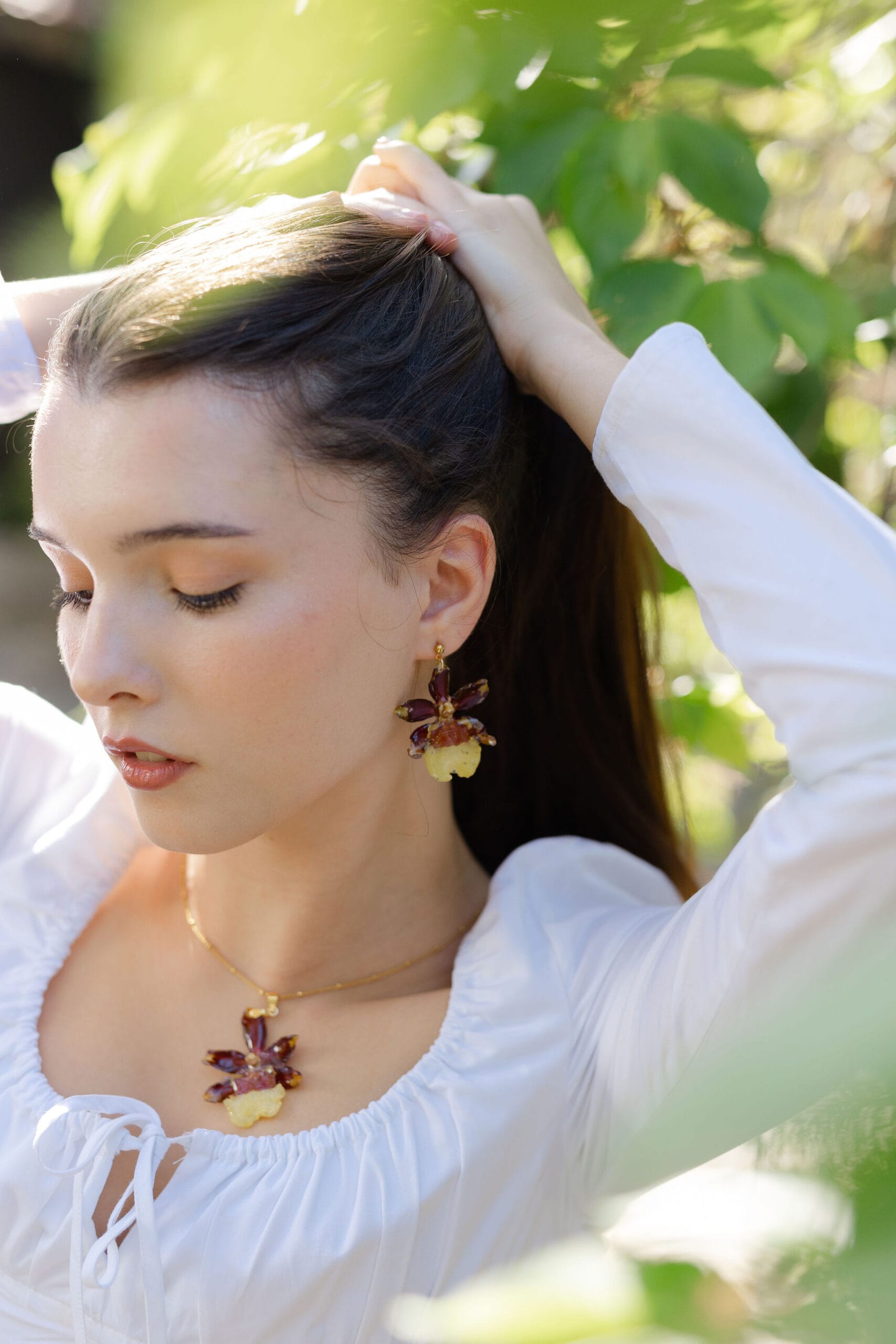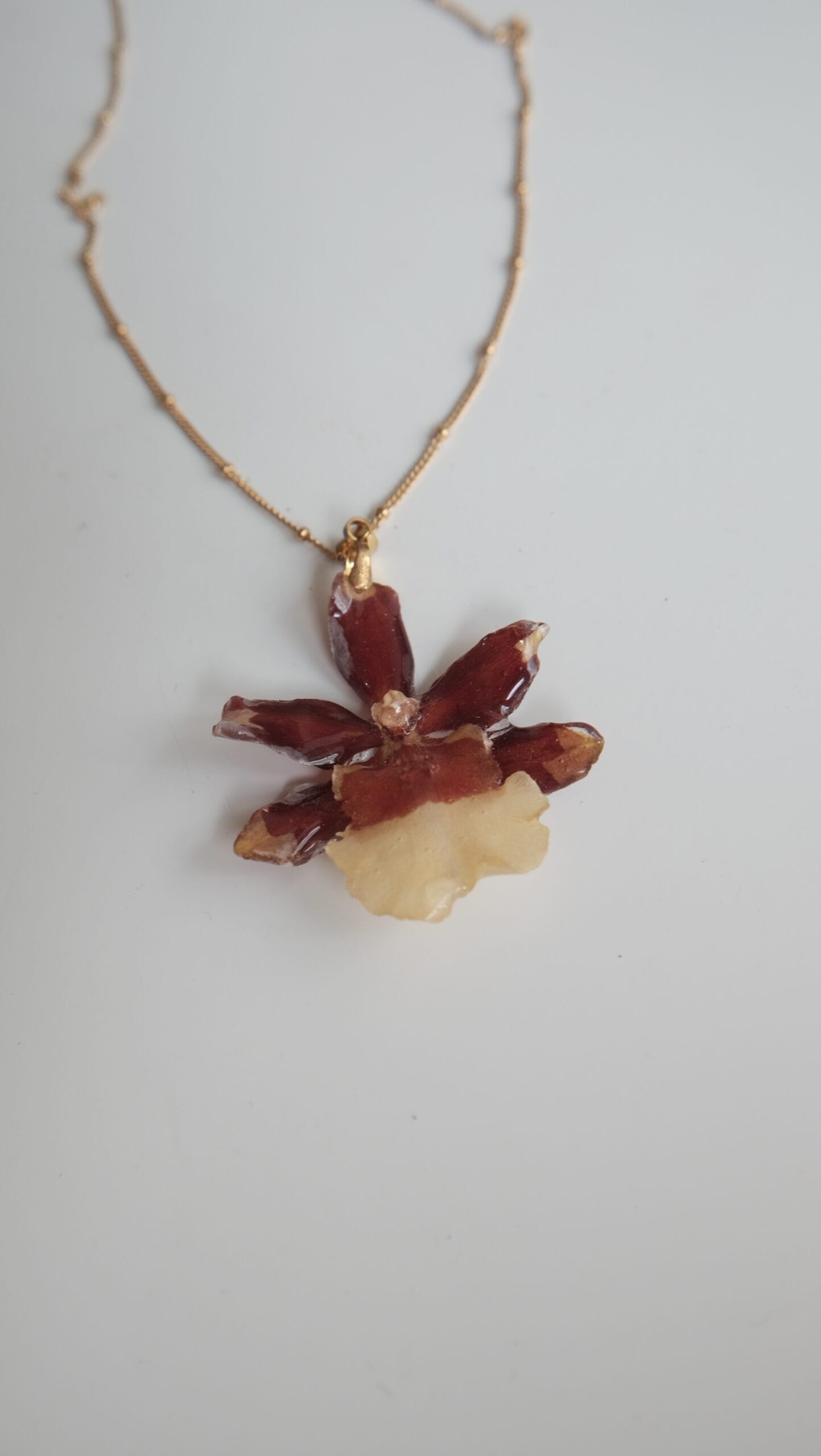 Collar hecho con una orquídea Cambria real.