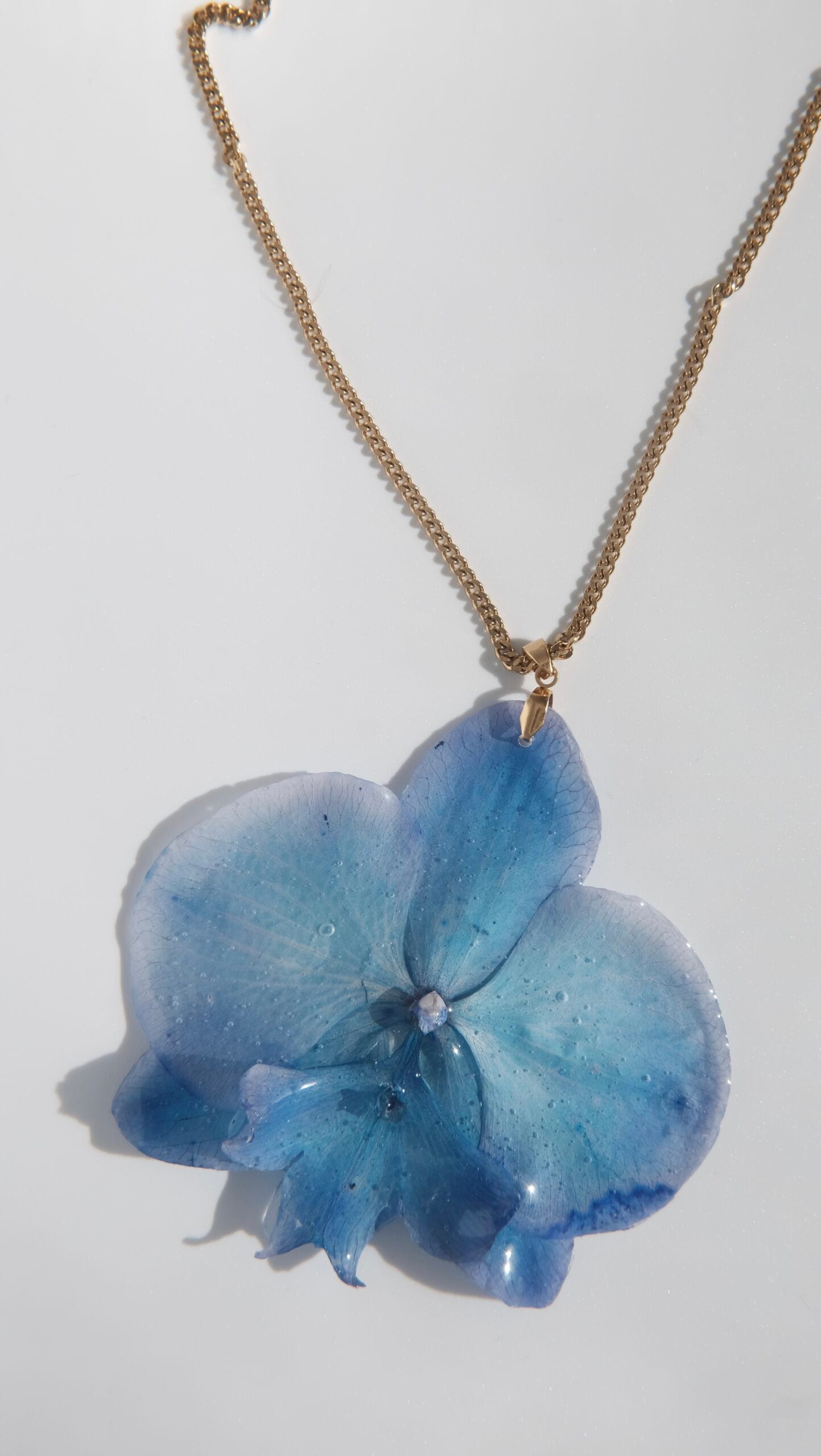 Collar hecho con una orquídea phalaenopsis azul real.