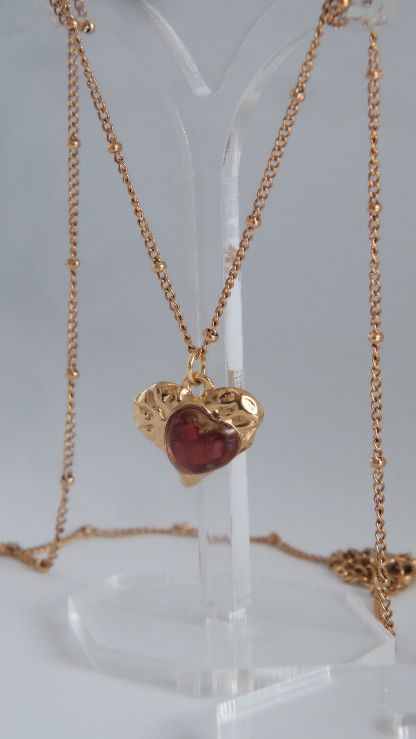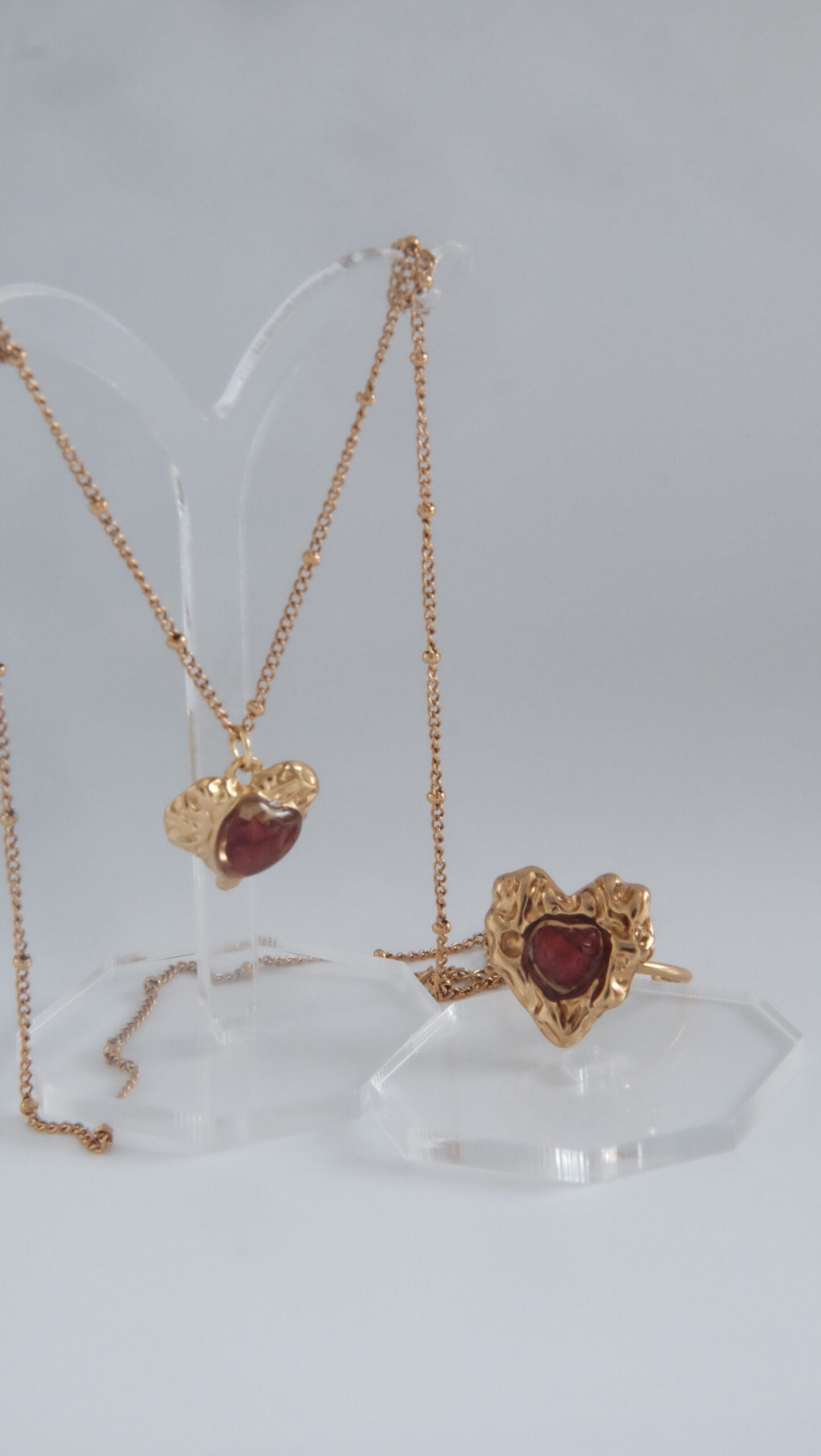 Compuesto de un collar en forma de corazón de pétalo de gerbera roja de 45cm de longitud (si se necesita más largo, poner en notas de pedido cuánto exactamente y se añadirá sin coste adicional). Acompañado de un anillo ajustable a conjunto con el collar.