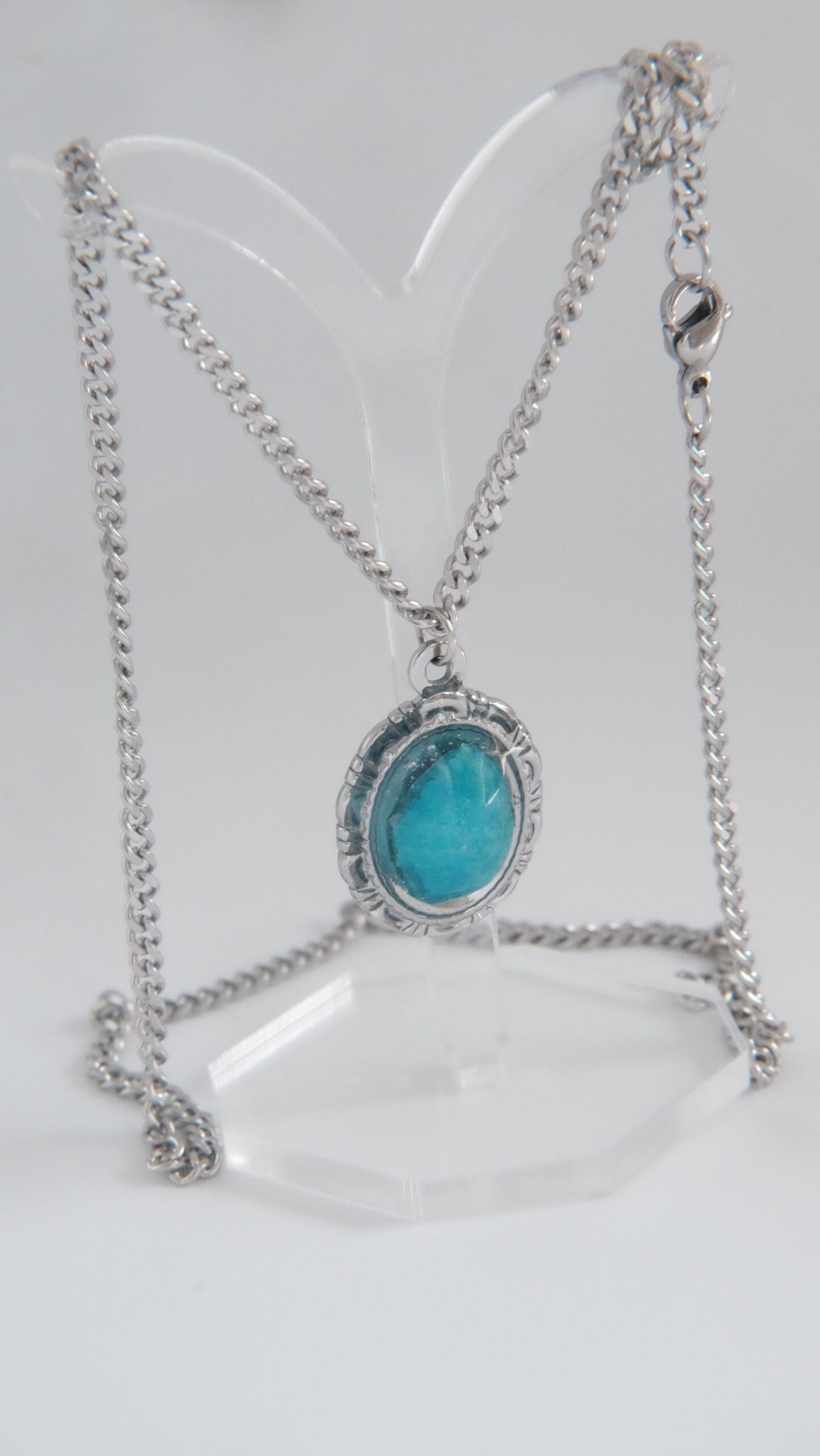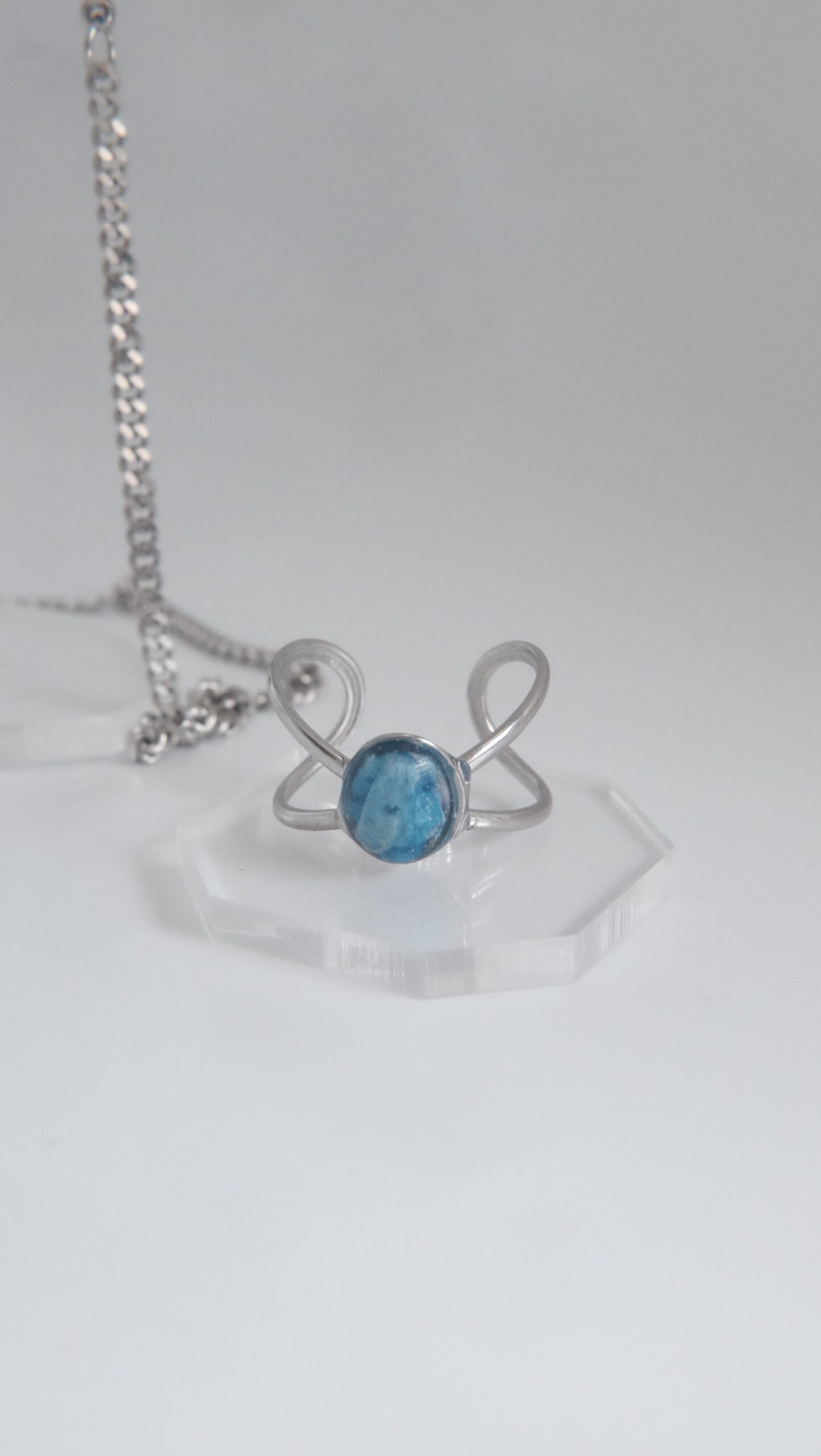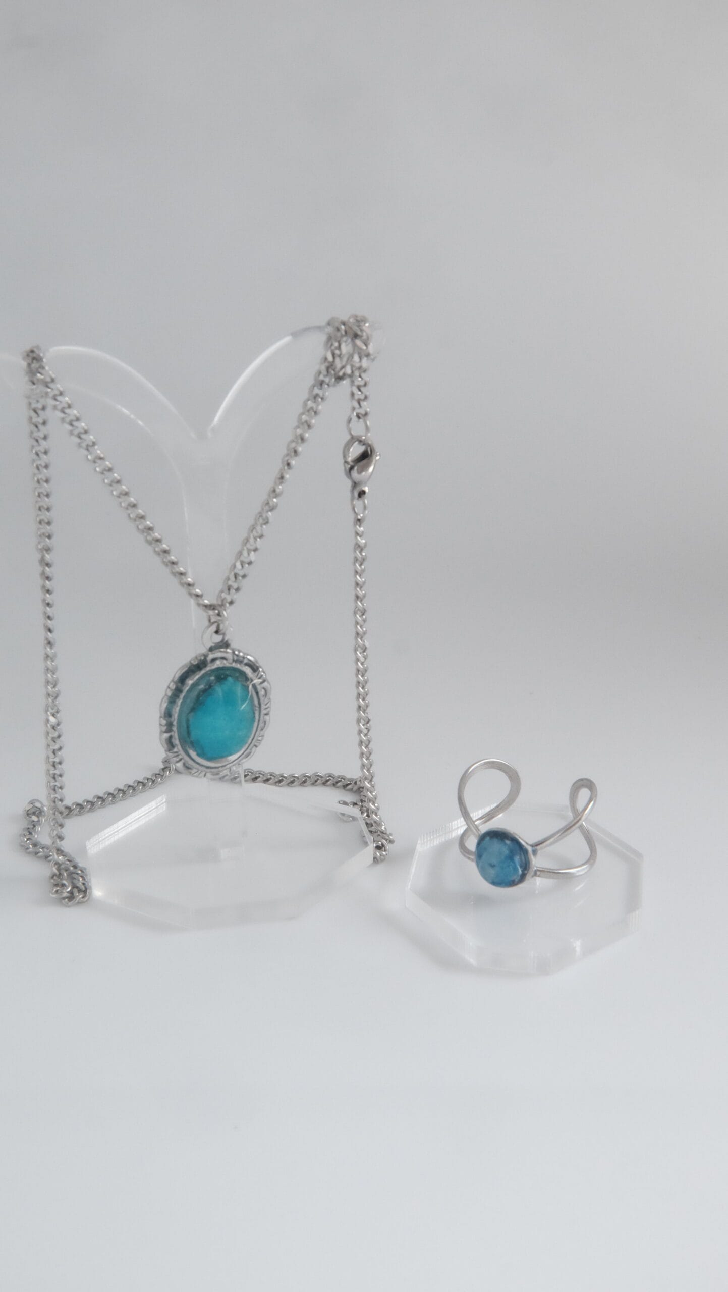 Compuesto de un collar de pétalo de orquídea azul de 45cm de longitud (si se necesita más largo, poner en notas de pedido cuánto exactamente y se añadirá sin coste adicional). Acompañado de un anillo ajustable a conjunto con el collar.