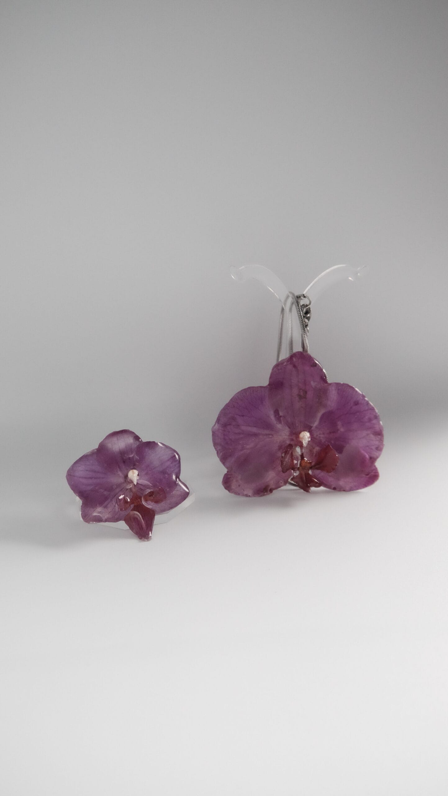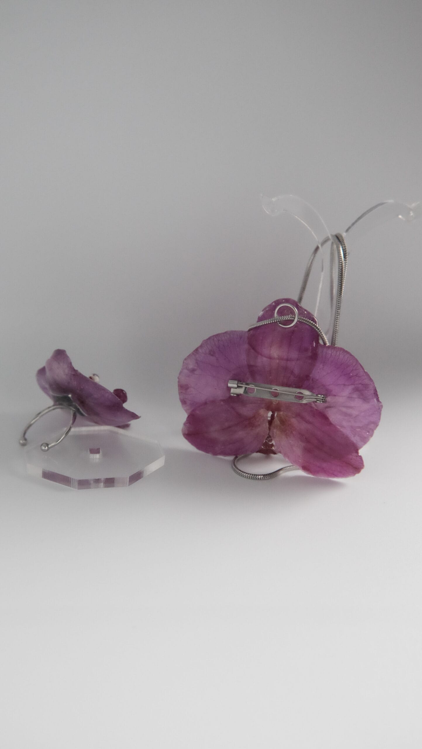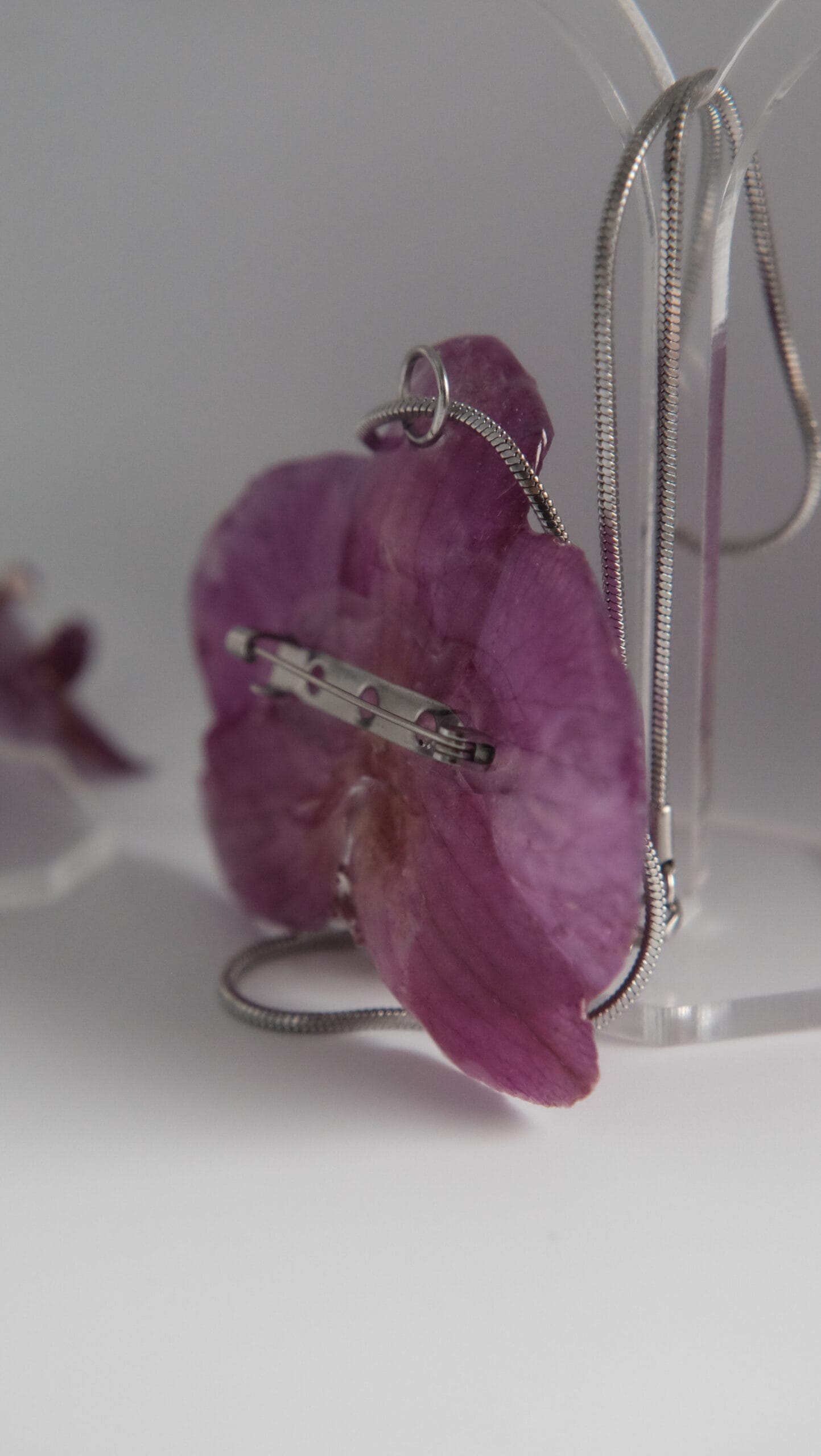 Compuesto de un collar multifunción de orquídea de 50cm de longitud (si se necesita más largo, poner en notas de pedido cuánto exactamente y se añadirá sin coste adicional). Este collar también tiene la función de broche. Acompañado de un anillo ajustable a conjunto.