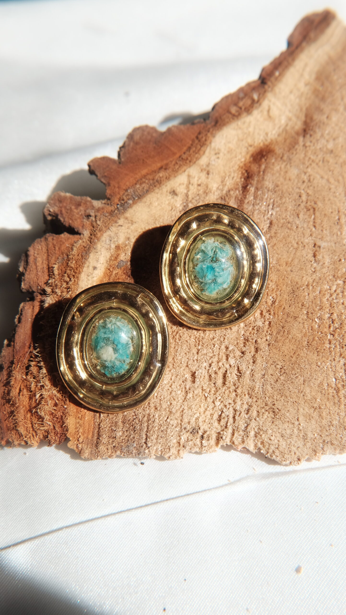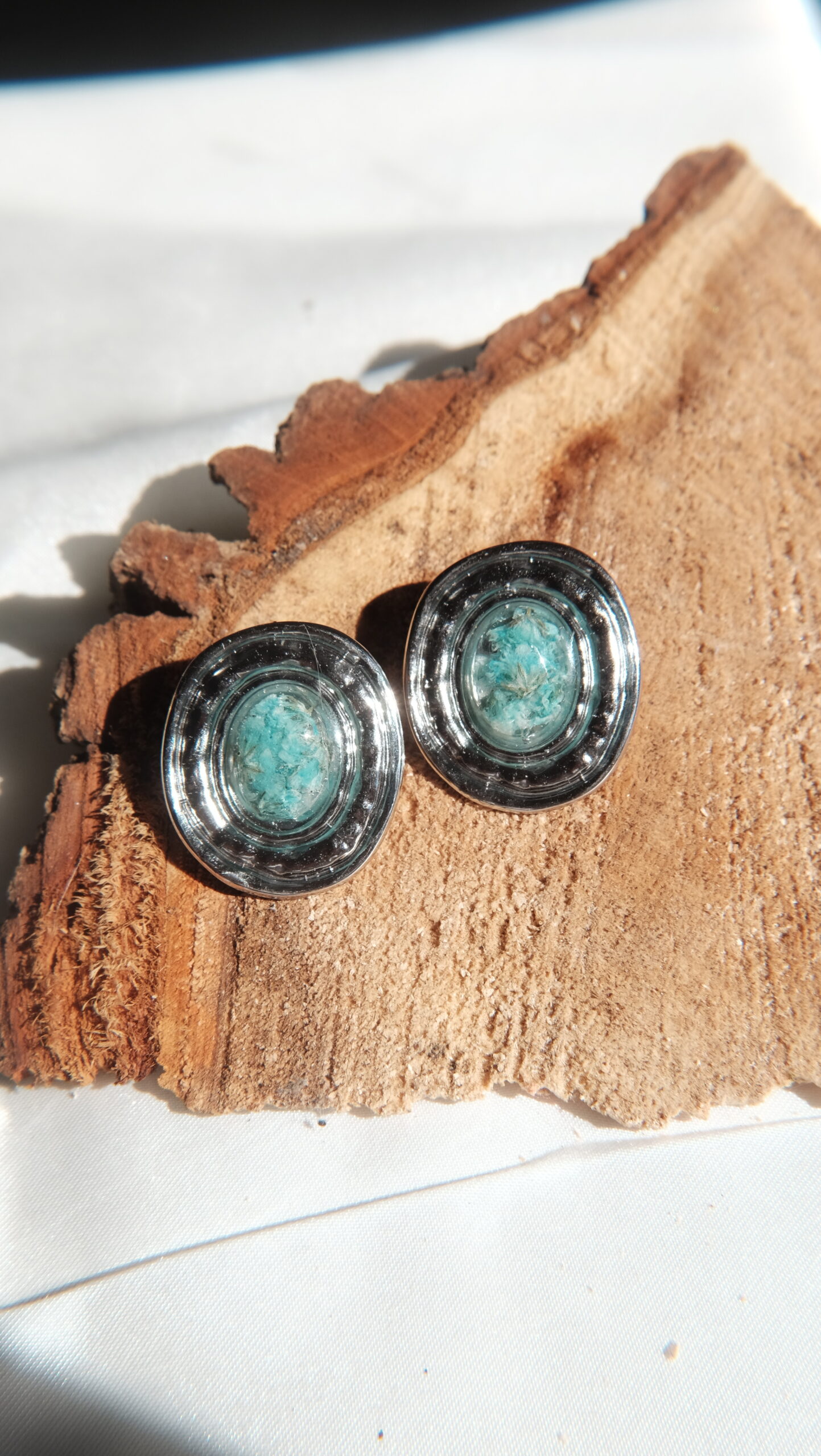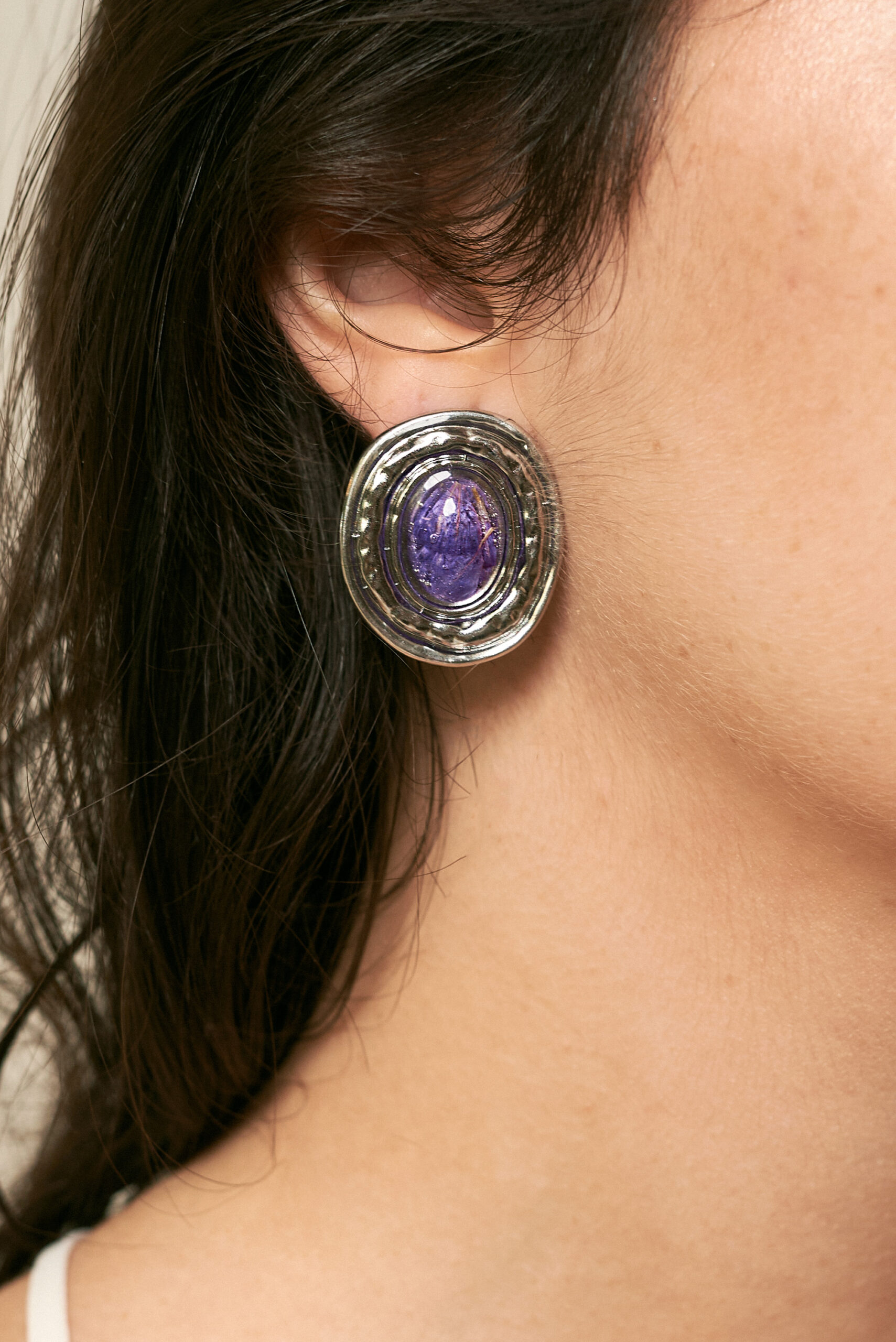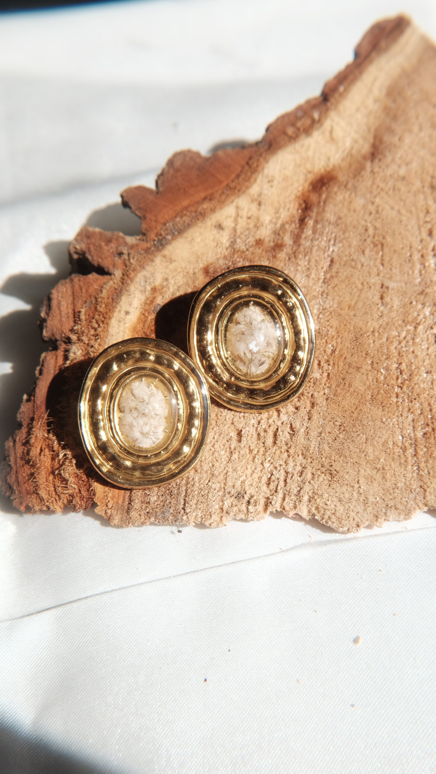 Pendientes hechos con flores y plantas naturales.