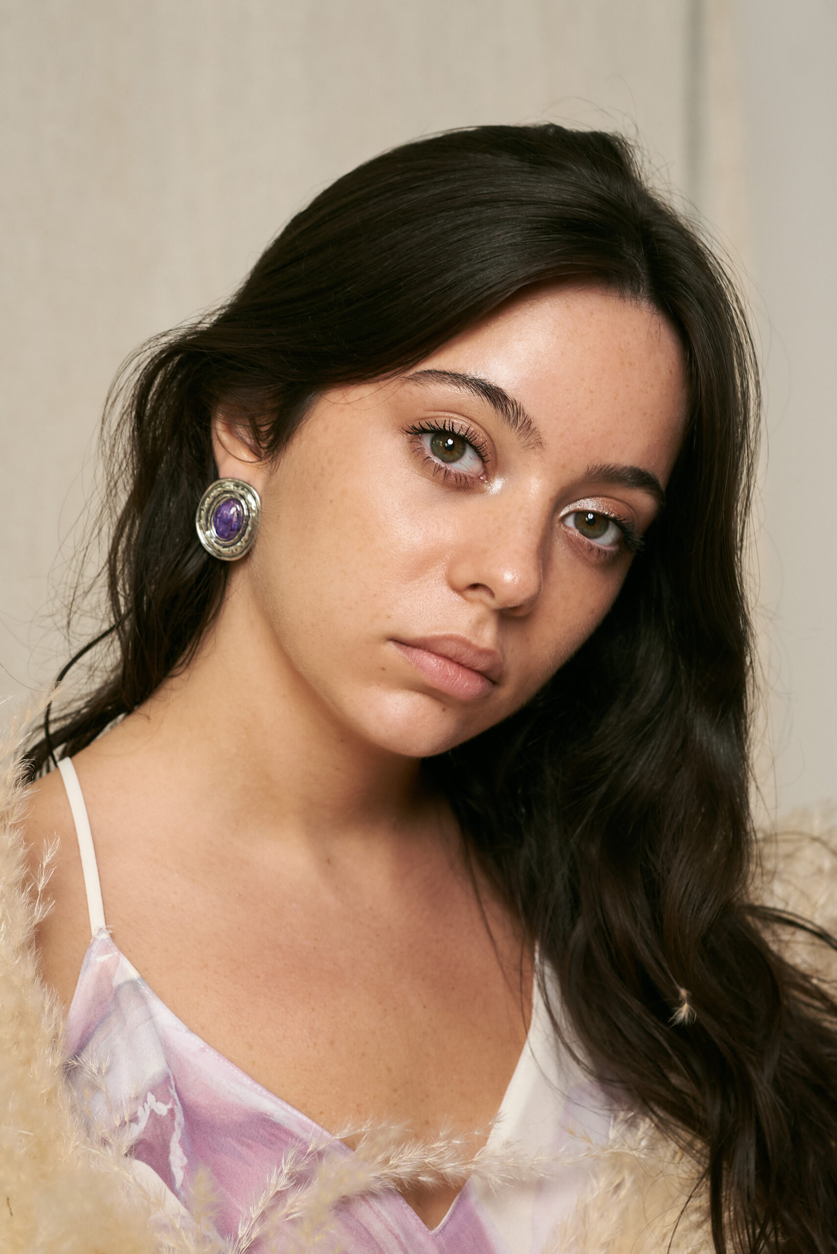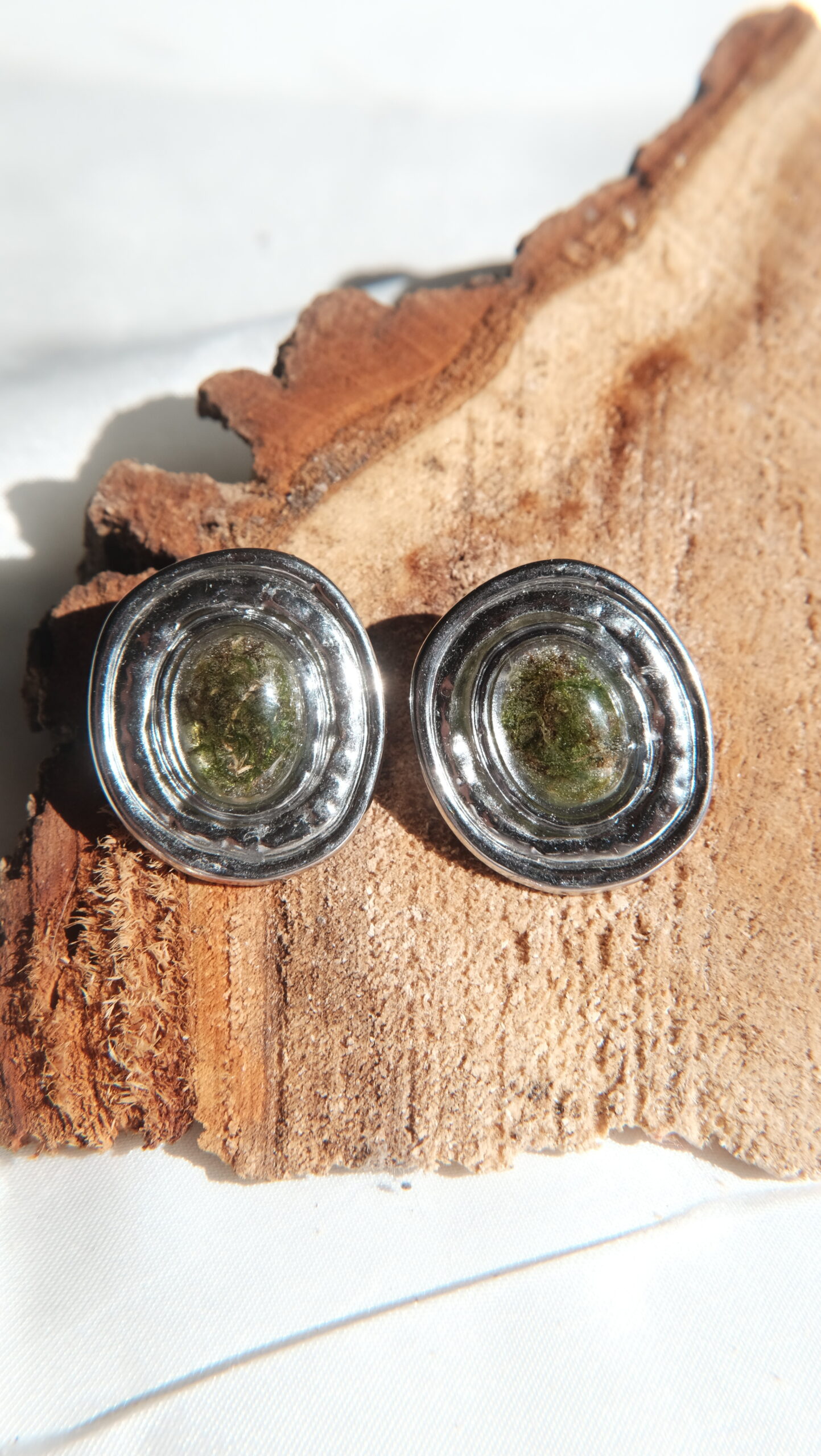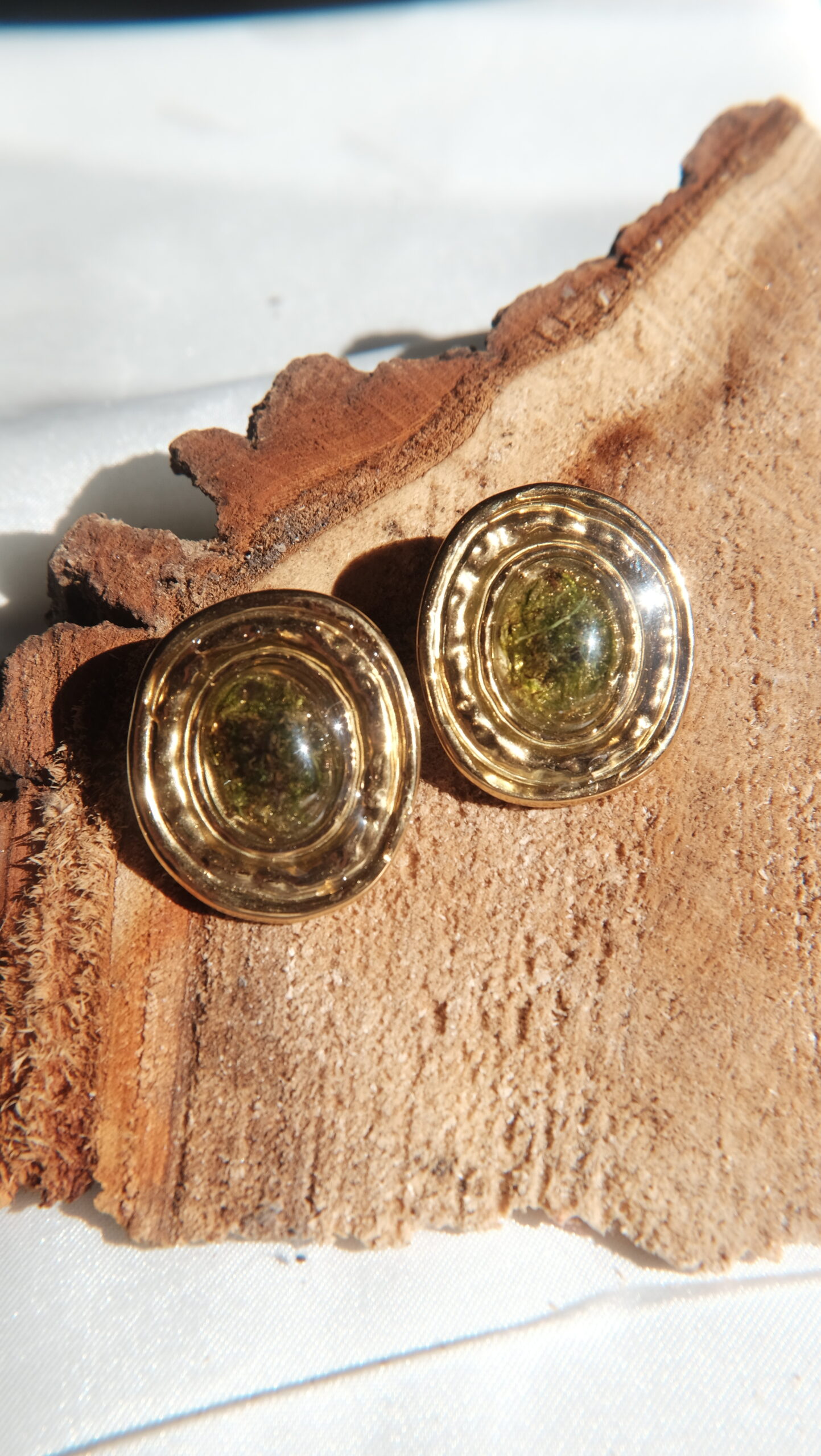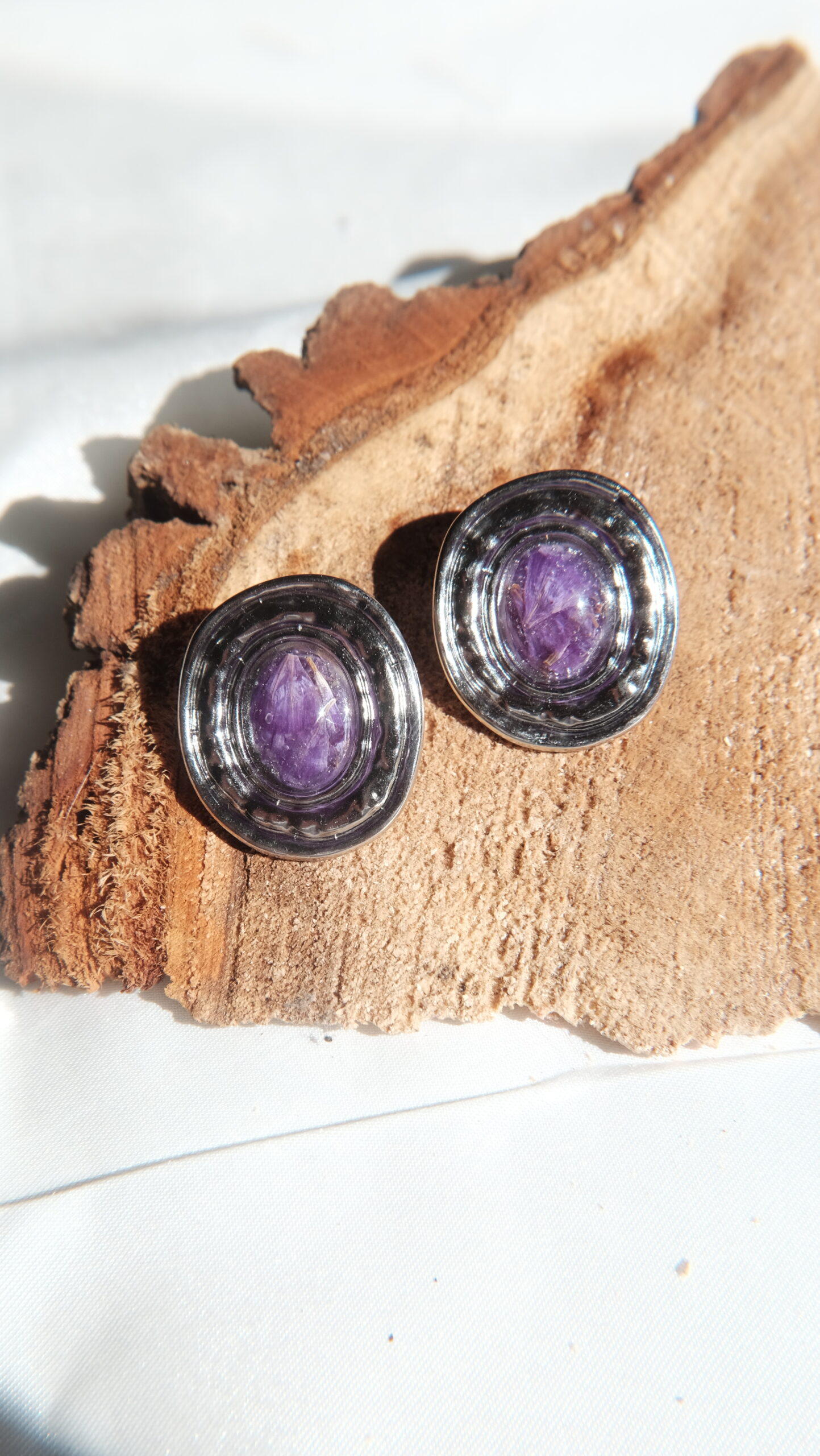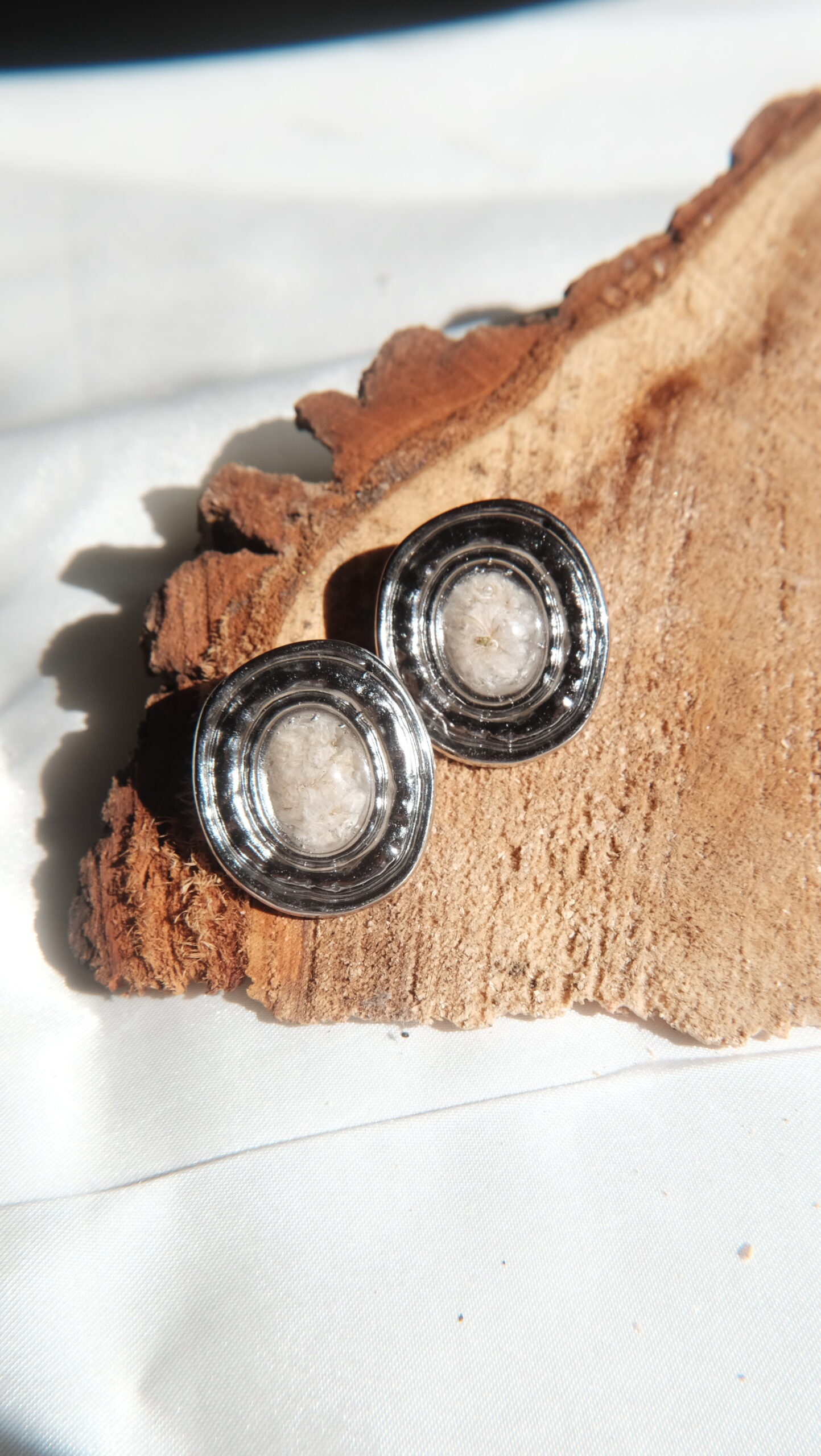 Pendientes hechos con flores y plantas naturales.