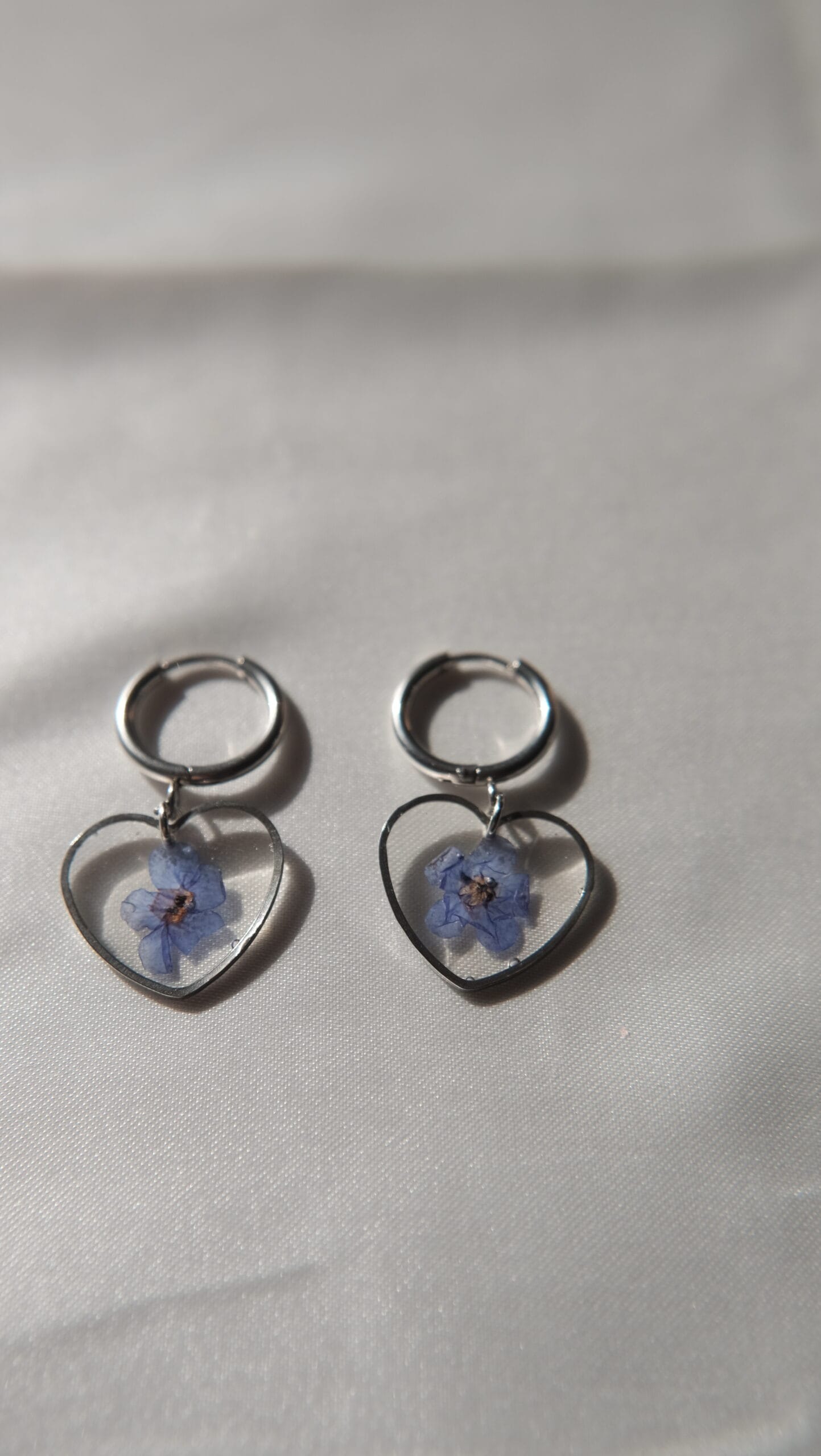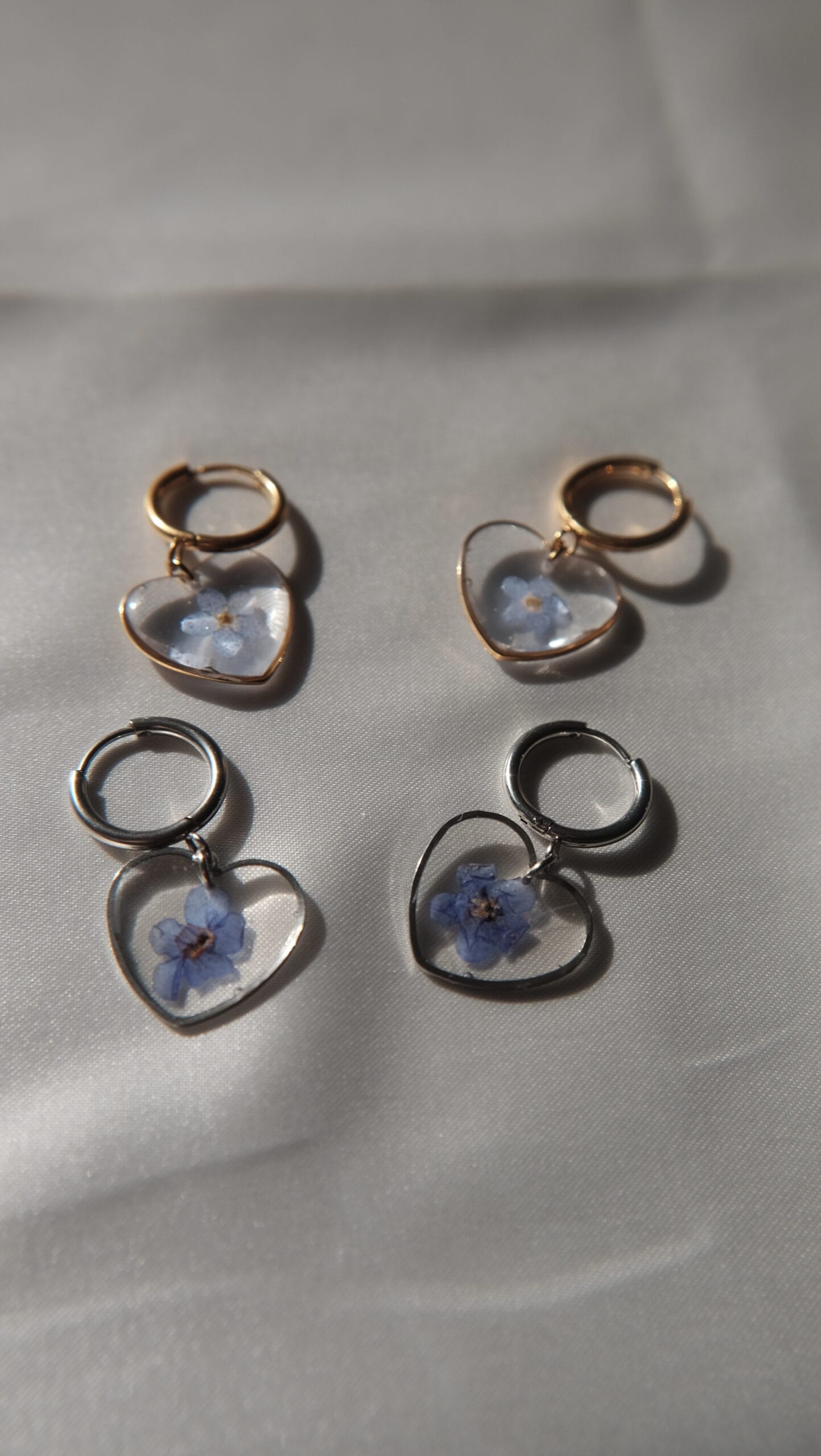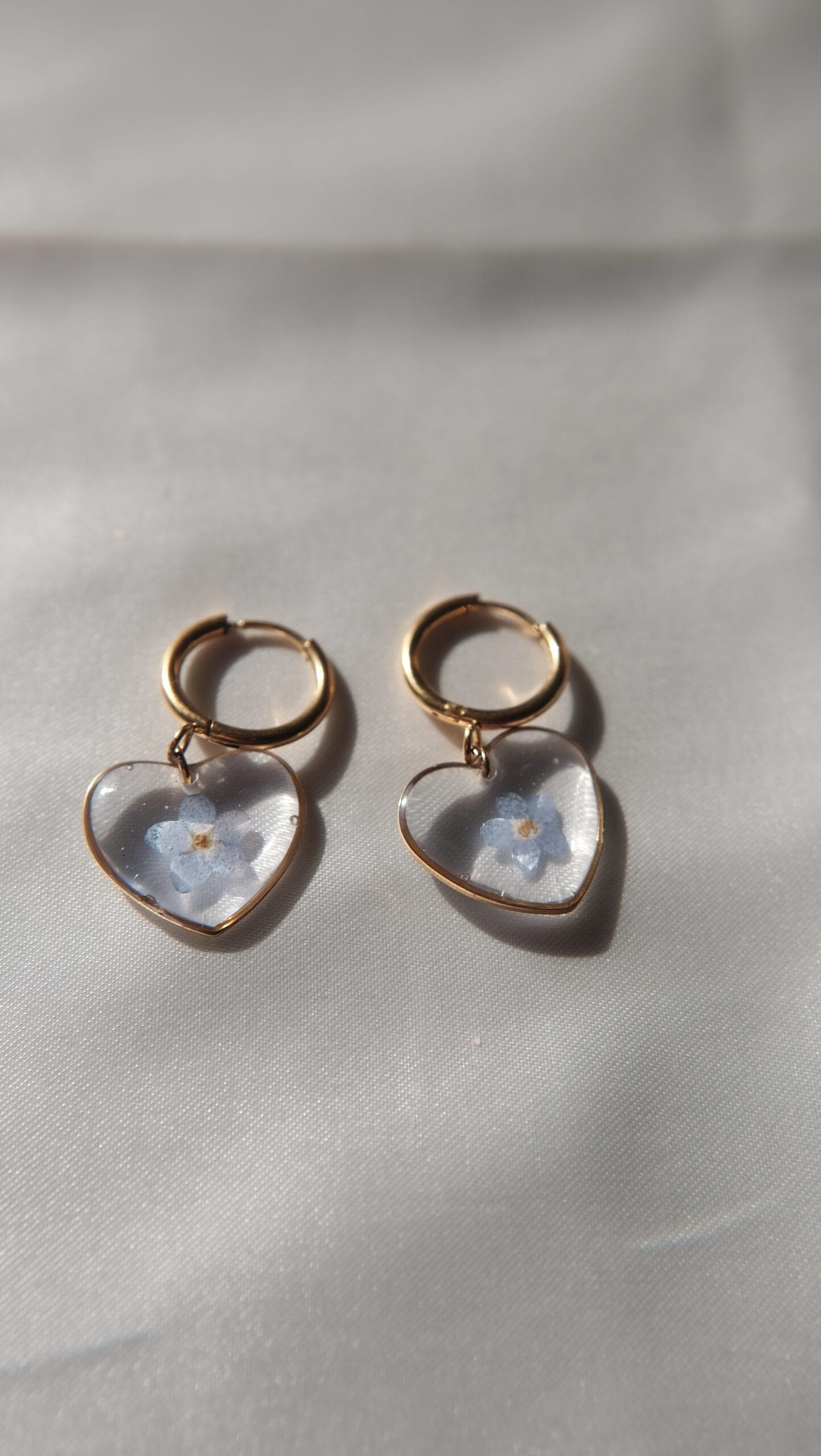 Pendientes hechos con la flor de lengua de buey encapsulada.