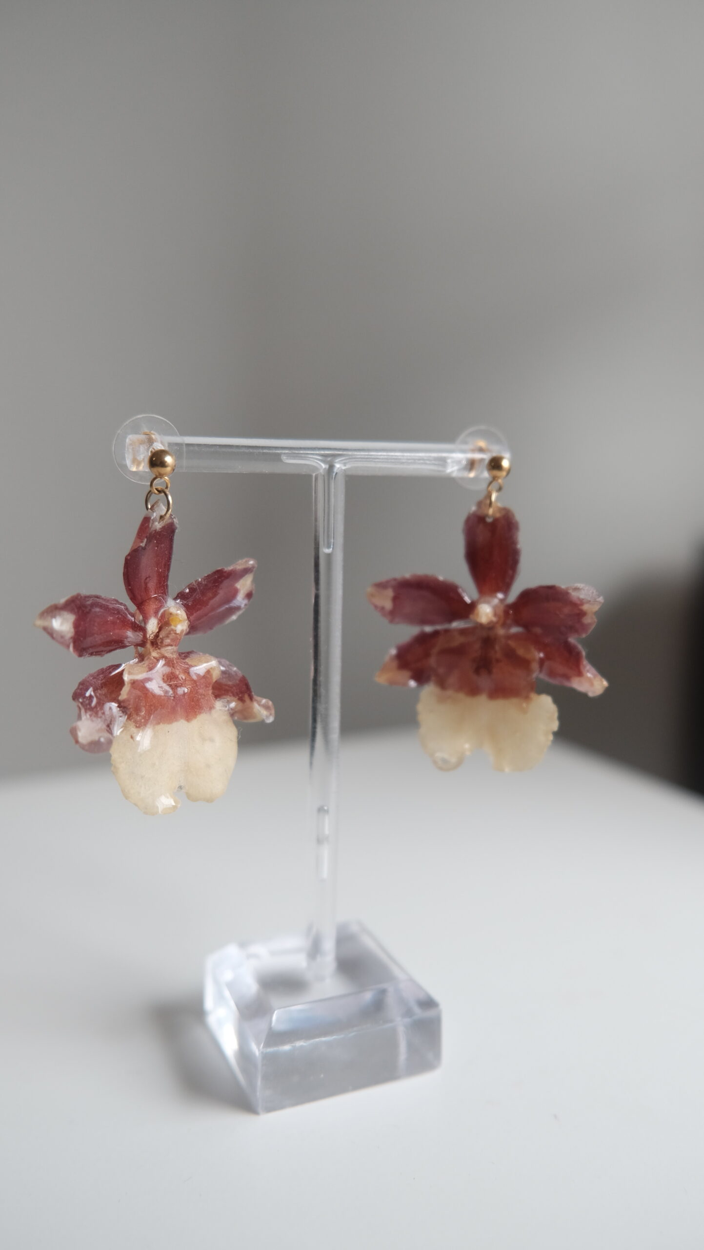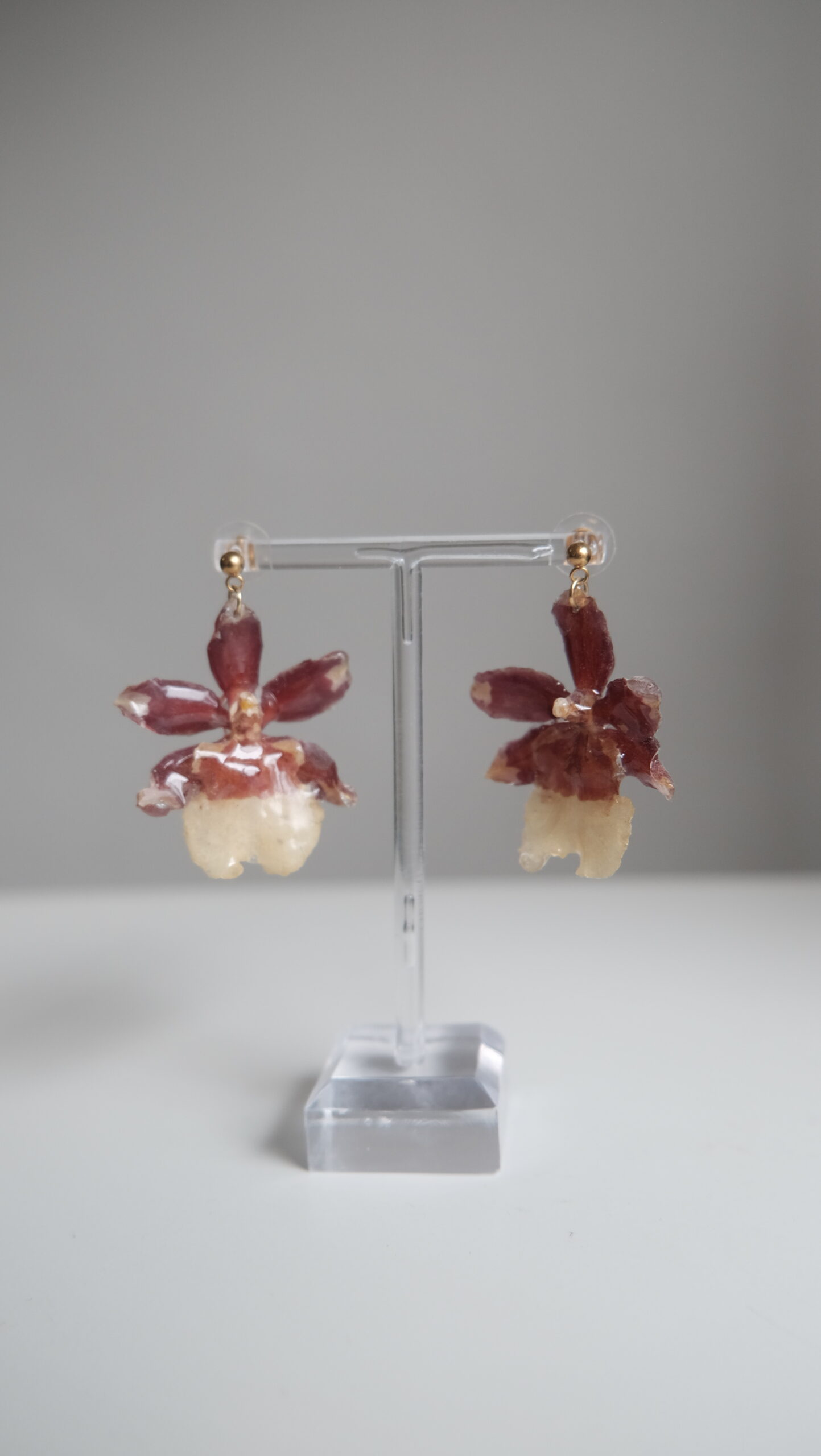 Pendientes hechos con orquídeas cambrias reales.