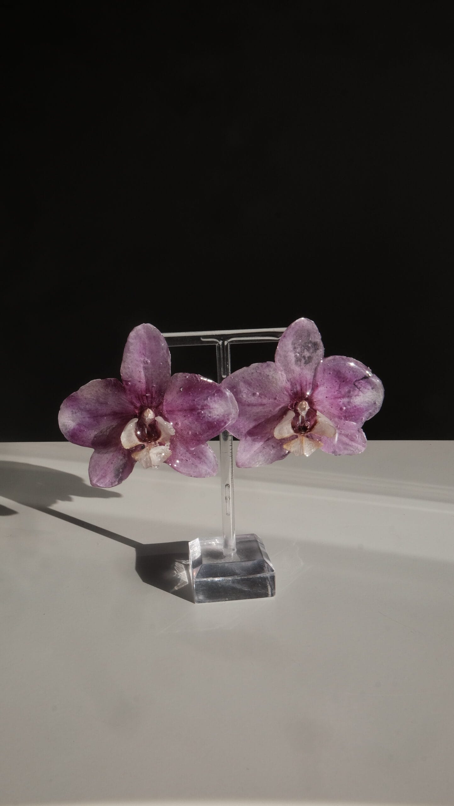 Pendientes hechos con orquídeas phalaenopsis reales.