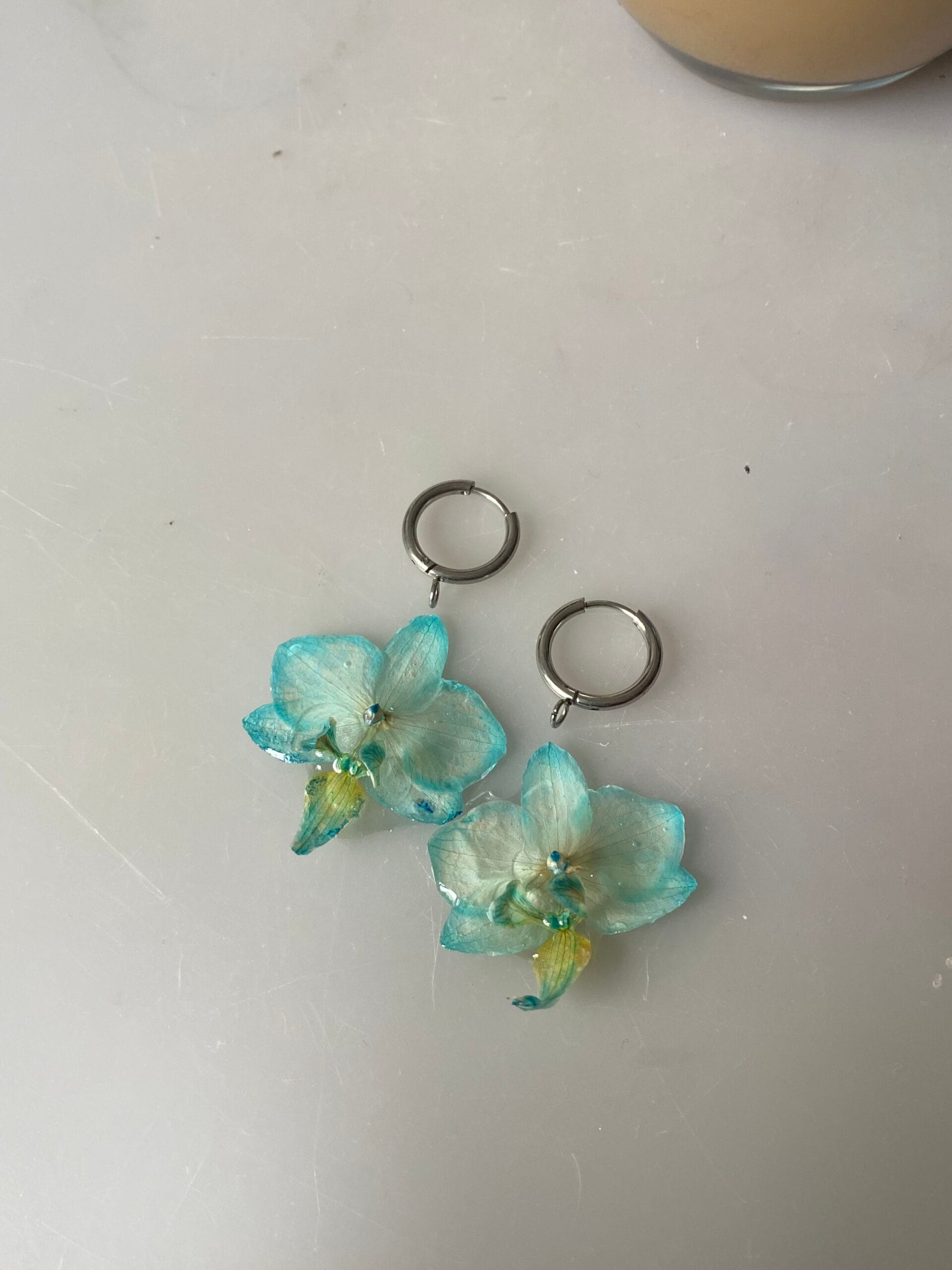 Pendientes hechos con una Orquídea mini real.